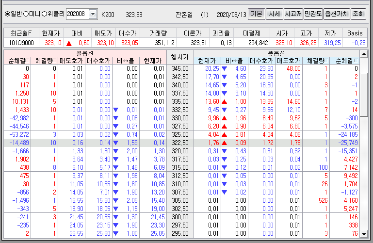 위 자료는 12월7일(수) 오전 10시41분 기준으로 대한민국 옵션시장의 포지션을 분석했던 자료입니다.12월7일(수) 오전 10시41분의 포지션 기준으로 위 자료에 2번으로 표기한 310 ~ 312.5 미만 구간까지 개인의 콜옵션 매수포지션이 내려오며 이 구간이 빨간 숫자로 바뀌에 되면 지수는 307.5 구간 하위로 내려오게 될 것임을 12월7일 포스팅을 통해 공유한 바 있습니다. 그런데 결국 개인의 지수 상승 베팅에 대한 과욕이 사고를 치고 말았습니다.
