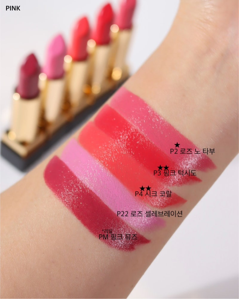 이번 신제품 립스틱 케이스는 메탈릭 골드 케이스에 블랙 카상드르 로고가 새겨져 있어 모던함과 클래식한 감성이 조화롭게 어우러져 있습니다! 이브생로랑의 쿠튀르 작업이 생각나서 너무 마음에 들었고, 더 좋은 점은 리필 컬러도 받을 수 있다는 점이에요. !RM, NM, PM, OM 4가지 색상으로 한정되어 있으며, 리필 시스템을 적용하여 손쉽게 색상 변경이 가능합니다. 총 30가지 색상이 있어서 정말 취향에 맞는 색상을 선택하실 수 있어요!