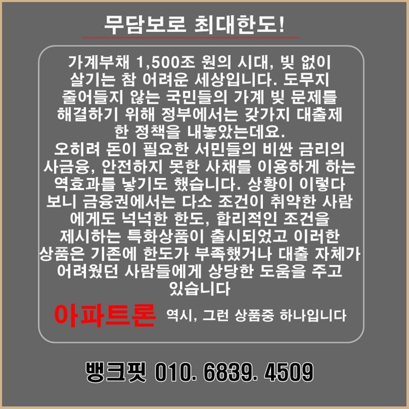 많은 분들이 누구나 된다 저신용자도 가능하다라는 현혹된 광고 문구에 속아 이곳저곳 알아보는 불법 대부 업체에끌려다니는 경우가 많습니다정식 등록된 상담사를 통하여 보다 올바른 정보그리고 추후 관리까지 받아보셔서 건전한 채무 상환 계획을 같이 세워보시길 바랍니다