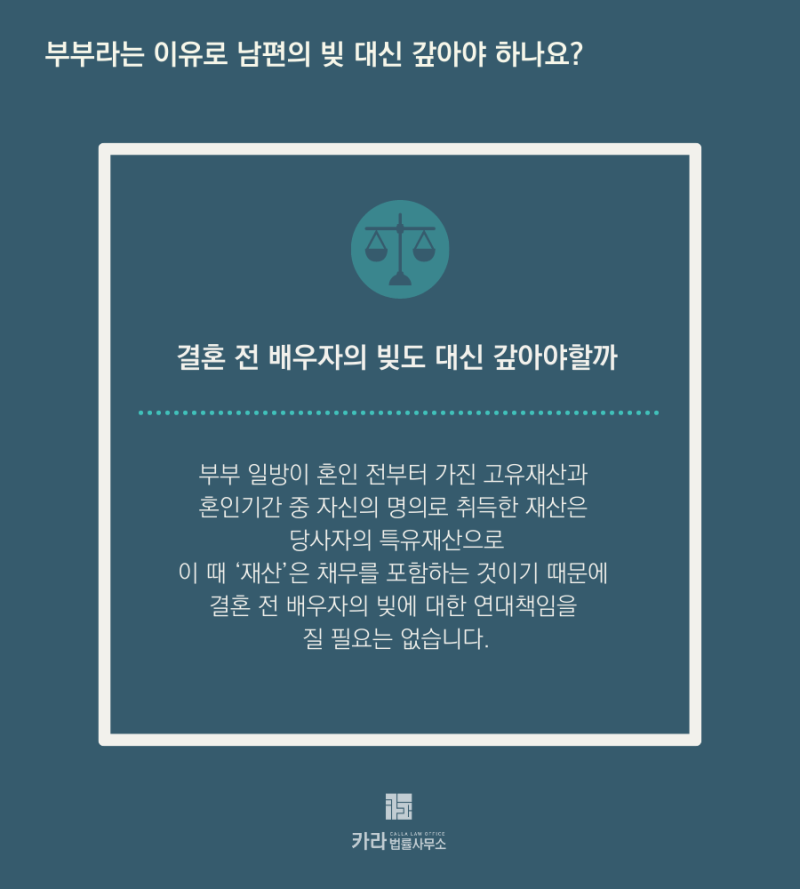안녕하세요, 변호사! 남편 .. 이번에 조직하는 동안 많은 빚이 있습니다. 개인 재활으로 배우자 빚을 해결할 수 있습니까?